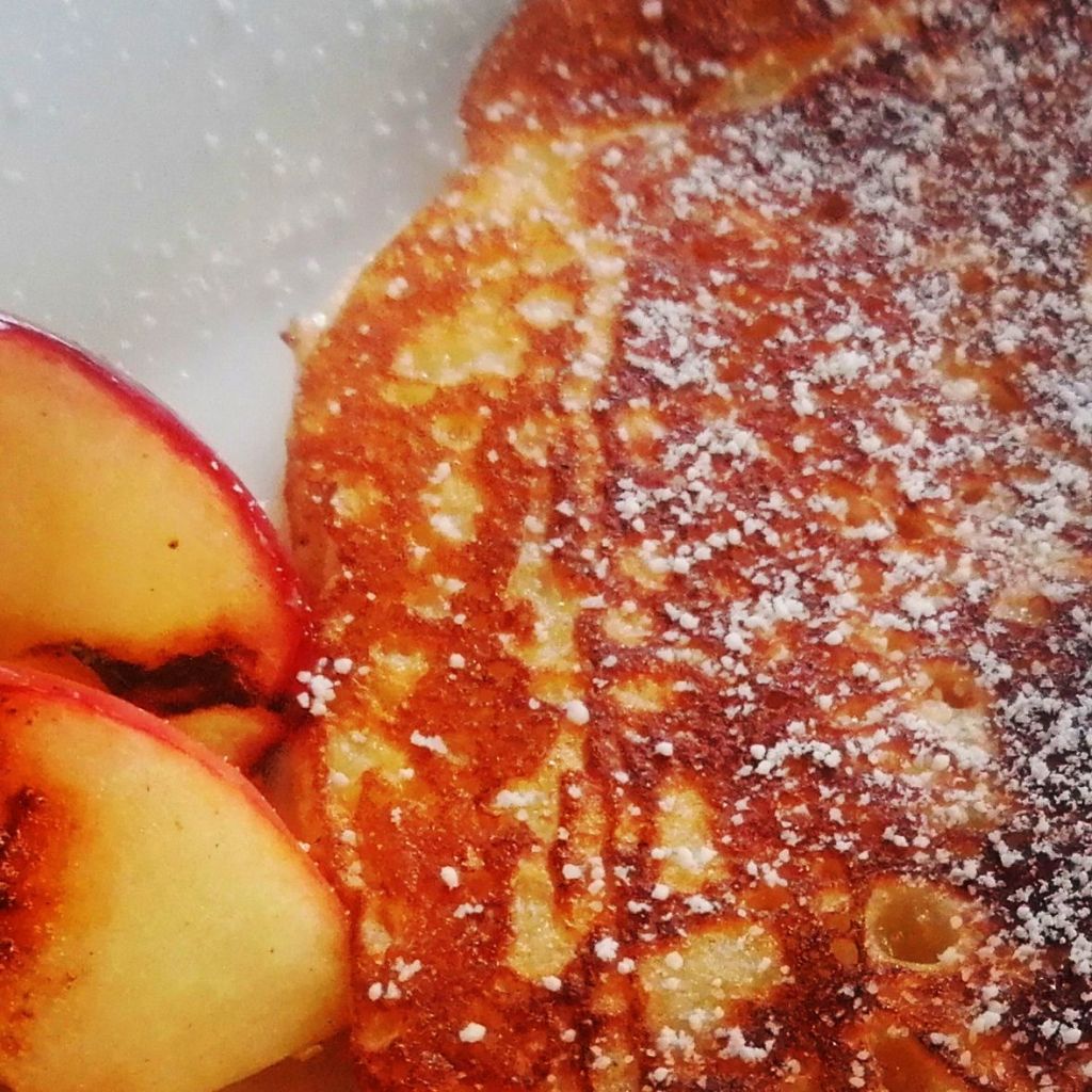 I griddled some apple slices to go with this, along side some Greek yoghurt (you can use different fruit and squirty cream if you’re feeling decadent). These also taste great along side bacon if you want to go savory.