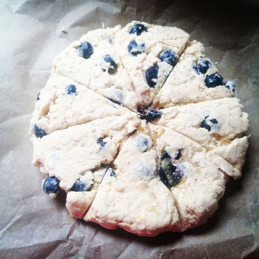 With a sharp knife score the top of the scone marking it in half, then a quarter then into 8ths. Place in the oven and bake for 15-20mins. Allow to on a wire wrack