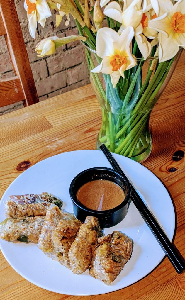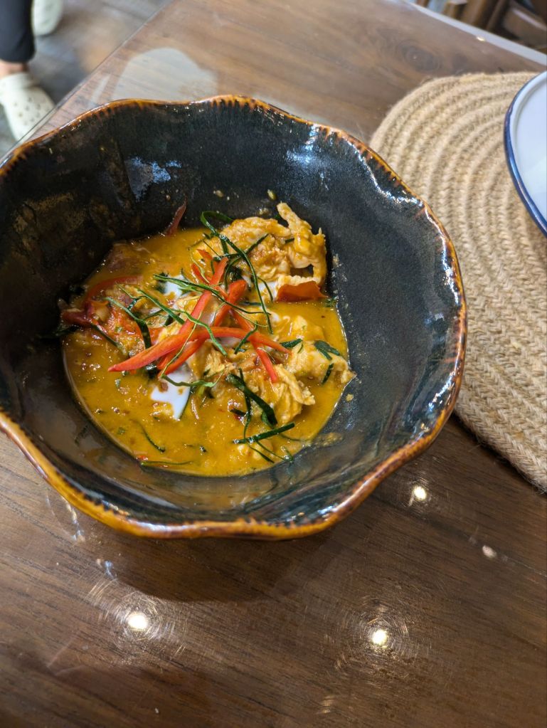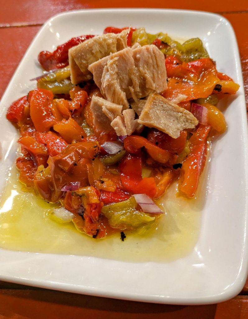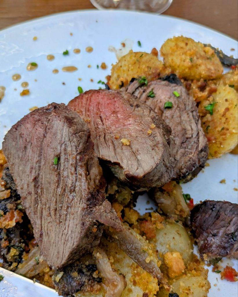 Local rabbit with a delicious but super pungent garlic and herb sauce.