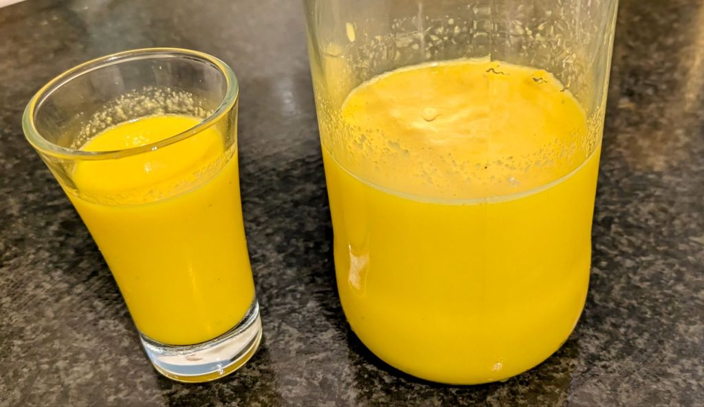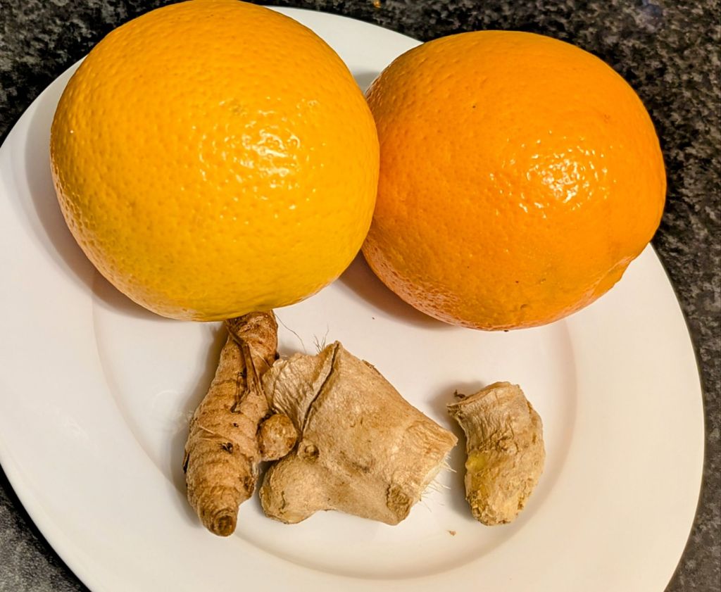A little oil is added as well. The fat helps your body absorb all the good stuff in the ginger and turmeric. You can substitute it for coconut oil if you prefer. Finally, honey is there for a little sweetness, but to be honest I’ll maybe leave it out next time as the oranges I had were really sweet, so maybe check on the sweetness of your oranges before adding. You can also swap the honey for agave or maple syrup if you are vegan.