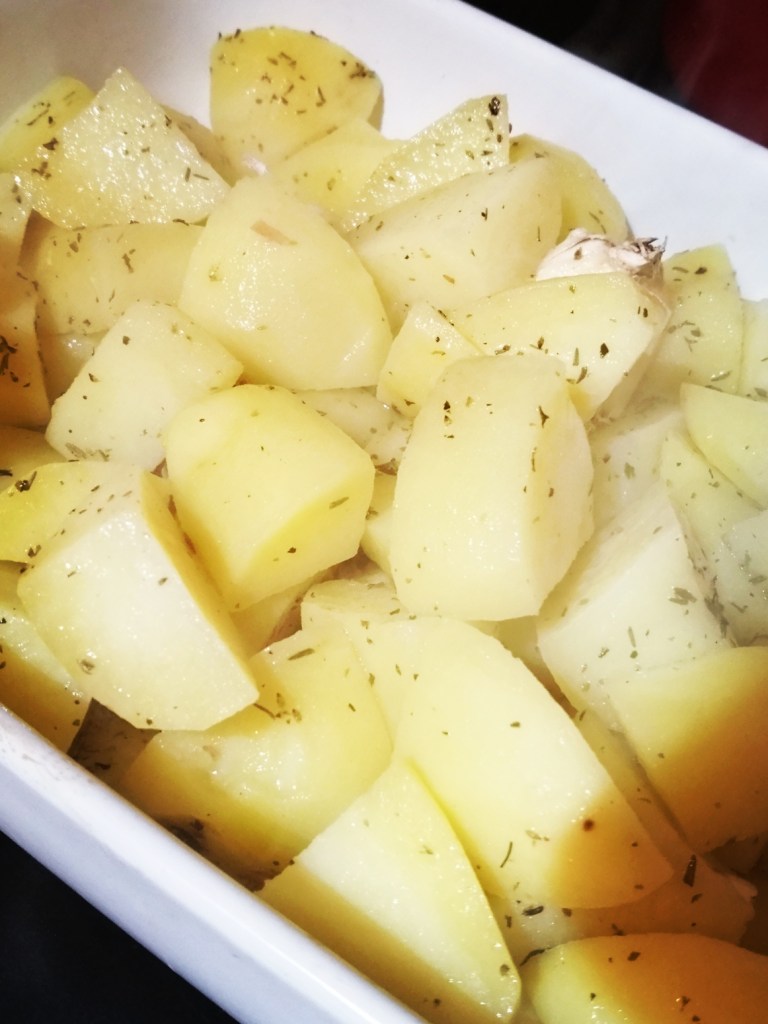 Potatoes roasted with garlic and herbs in olive oil and lemon juice, are little flavour bombs. I could eat a bowl of these on their own. However, they’re also fantastic with chicken or fish. I have also been known to fry up left over ones (the only reason there were left overs was because I was physically incapable of eating any more) the next day and topping with a fried egg, yum!