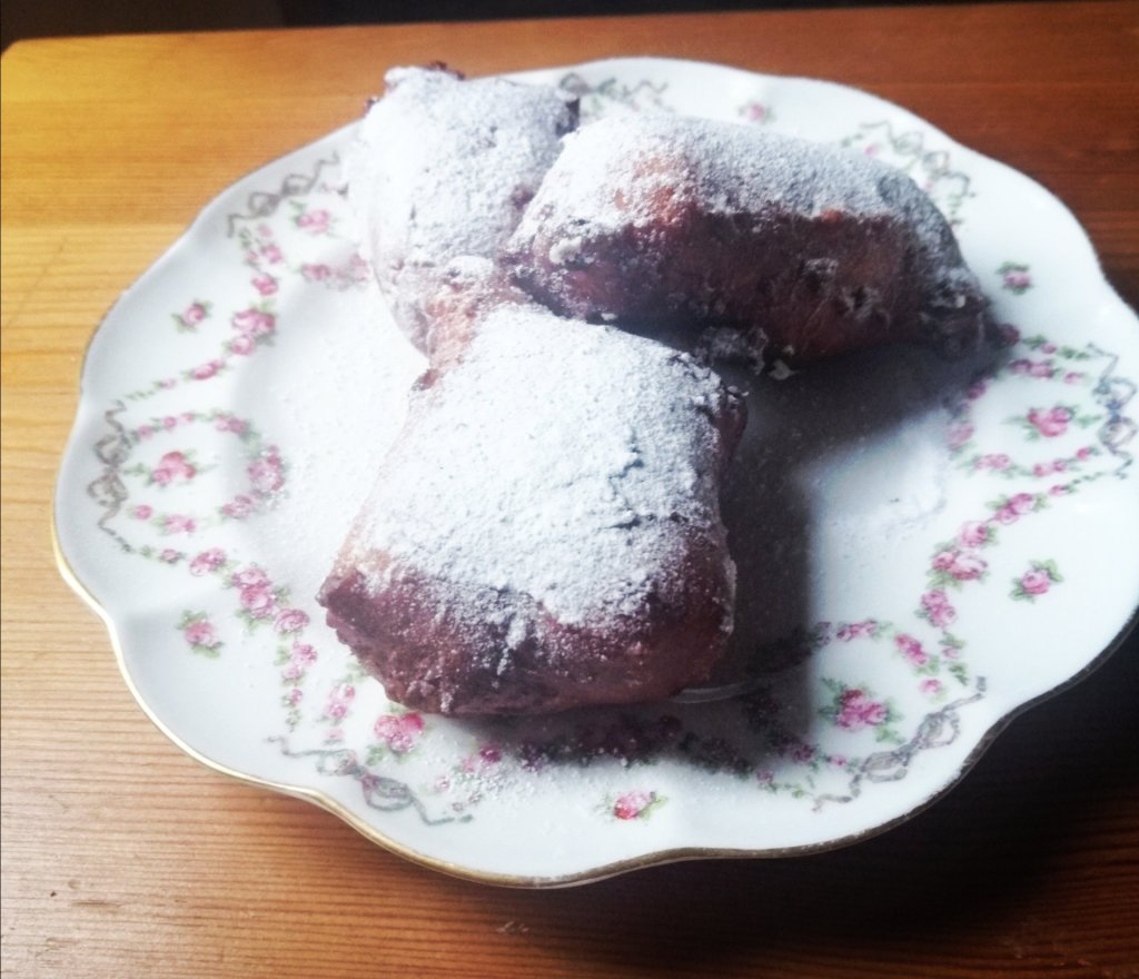 About a million years ago when I was a student I worked in a US Summer camp and went travelling afterwards. I ended up in New Orleans and everyone recommended I try a visit to Cafe du Mond in the French Quarter. Their signature dish is a little plate of 3 beignets (little oblong donuts, doused in icing sugar) and a cafe au lait. The place is an institution and recalling it had me craving them. I had my very own Marcel Proust moment eating these, it was amazing (Rememberance of Things Past, is quite a dull book but is famous for a passage about how food triggers memories)