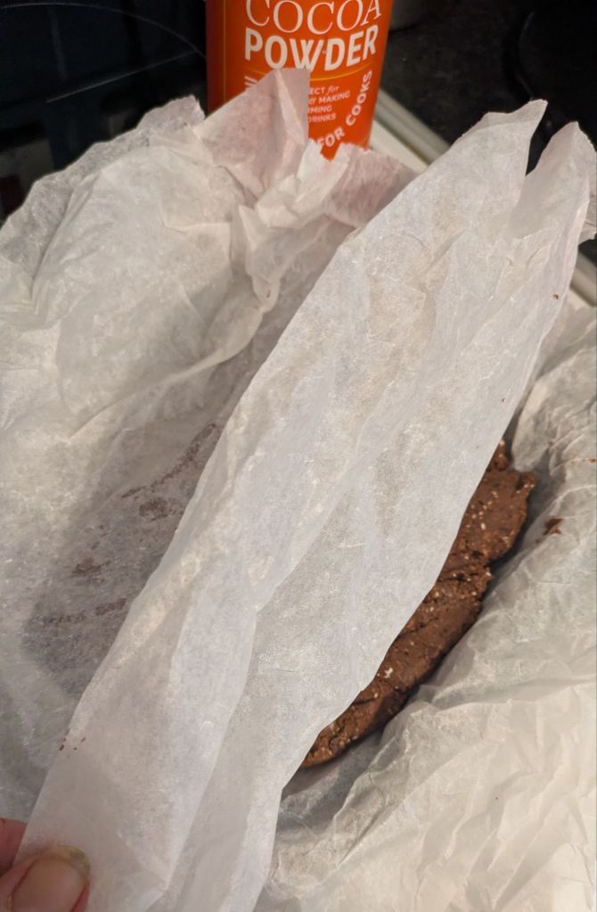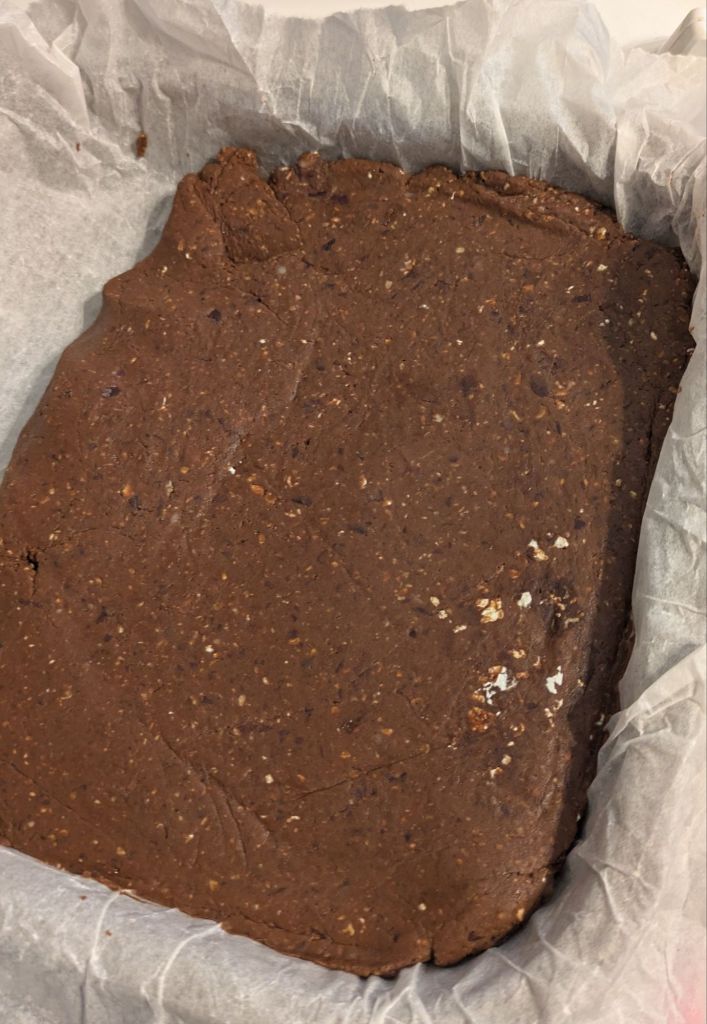 - The mix should start to form a ball in the food processor. Transfer it to a shallow dish lined with baking paper and place another sheet on top. Gently press down on the top sheet of paper (I used a cup to roll across the mix and smooth it until the mix was 2-3cm deep.