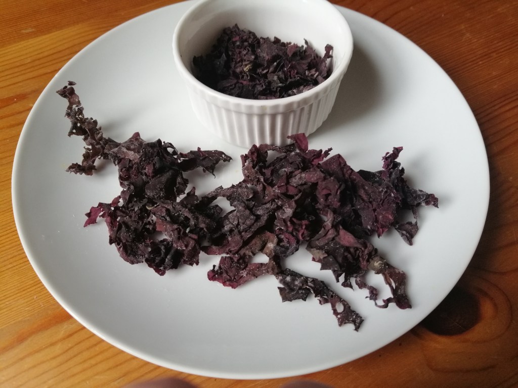 Most people from Northern Ireland will remember grandparents trying to force dulse on them as a child. If you were lucky enough to escape this and don’t know what dulse is, it’s deep purple seaweed gathered around the coast of Northern Ireland (and other places too). As a child I found it too salty, and the long strands too chewy (I wasn’t a fan).