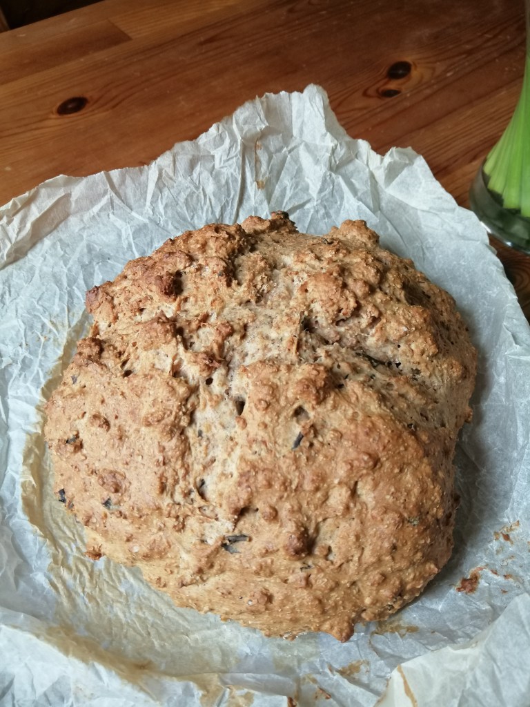 This recipe calls for buttermilk, which i never have, so if you don’t have it use ordinary milk and the juice of half a lemon (the acidity from the buttermilk/lemon juice is needed to cause the chemical reaction that makes the bread rise).