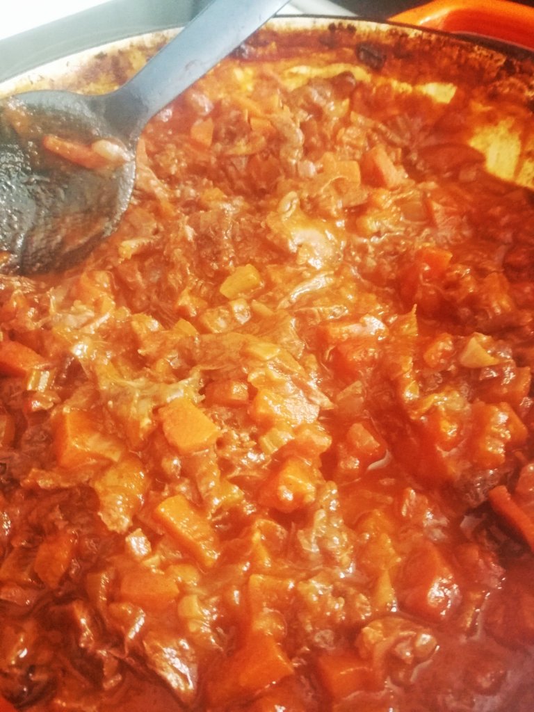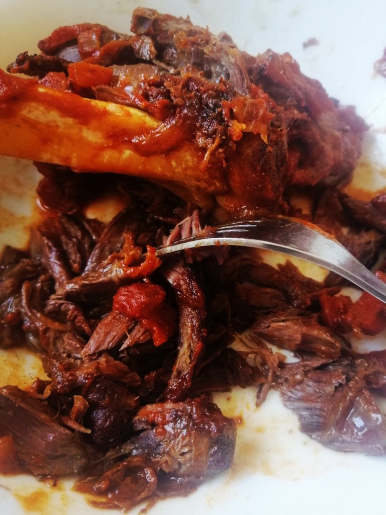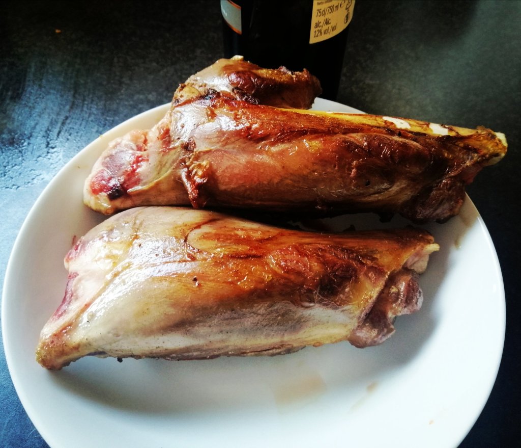 I’m lucky enough to have a friend who’s husband culls local deer. She recently turned with a big of venison including a shoulder of venison (thank you Dermot and Bronagh). Apologies that the photos don’t do this justice, but we fell on this like a pack of animals and were too interested in feeding our faces with delicious roast meat to take decent photos.