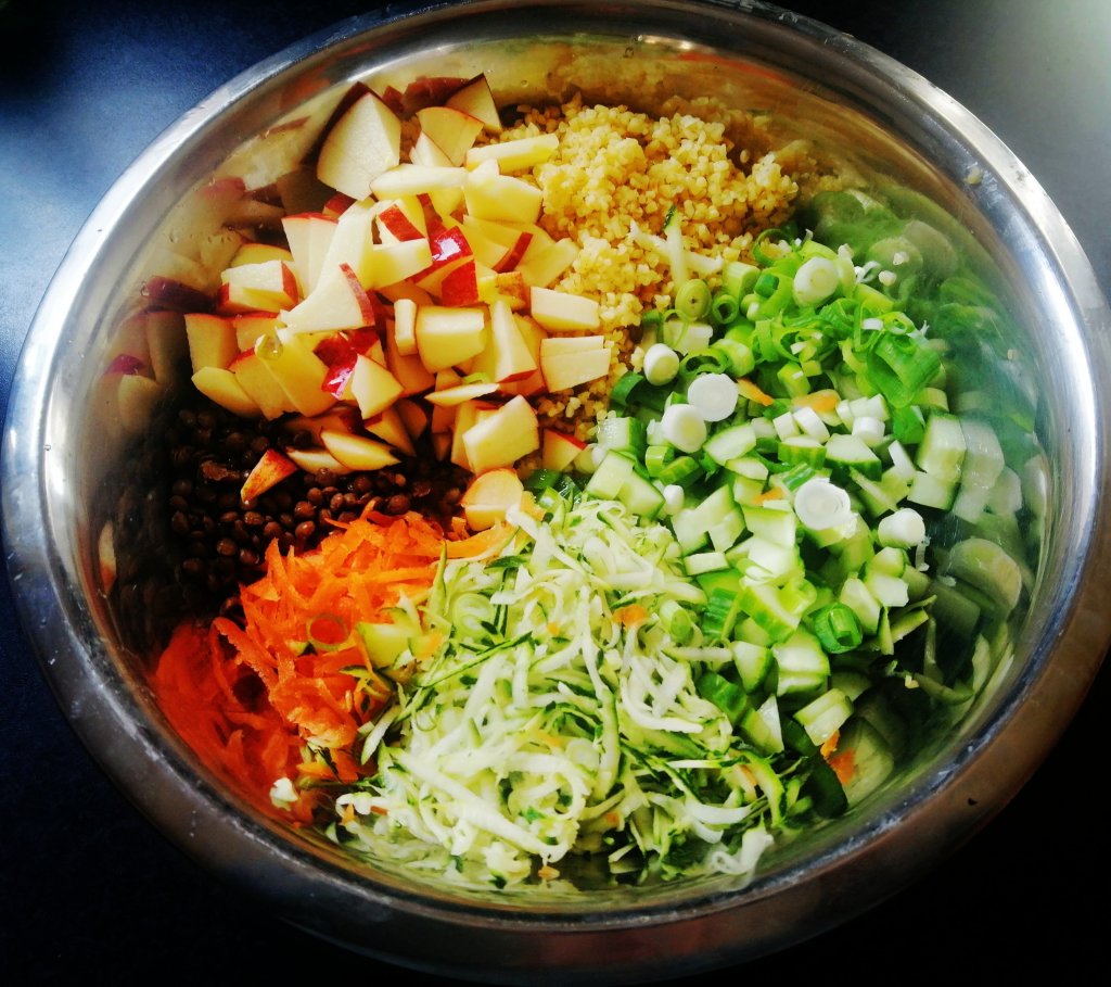- Whisk the eggs together (you can put them through a sieve if you want a really smooth omelette but it isn’t essential)